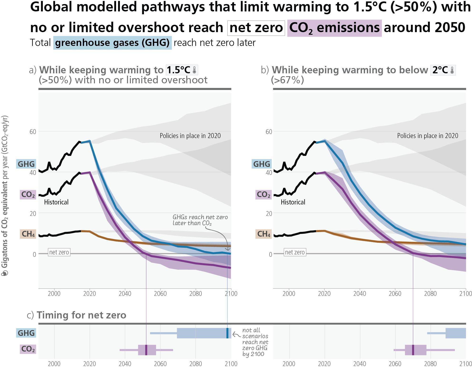 More information on country-level net zero pledges is provided in S2.3.1, on the timing of global net zero emissions in S3.3.2, and on sectoral aspects of net zero in S4.1.